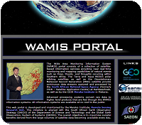 The Wide Area Monitoring Information System (WAMIS) portal consists of a collection of satellite-based information services providing near real-time monitoring and mapping capabilities of natural events such as Fires, Floods, and Droughts occurring within Southern Africa. This web portal is developed and maintained by the Meraka Institute (CSIR), Remote Sensing Research Unit.